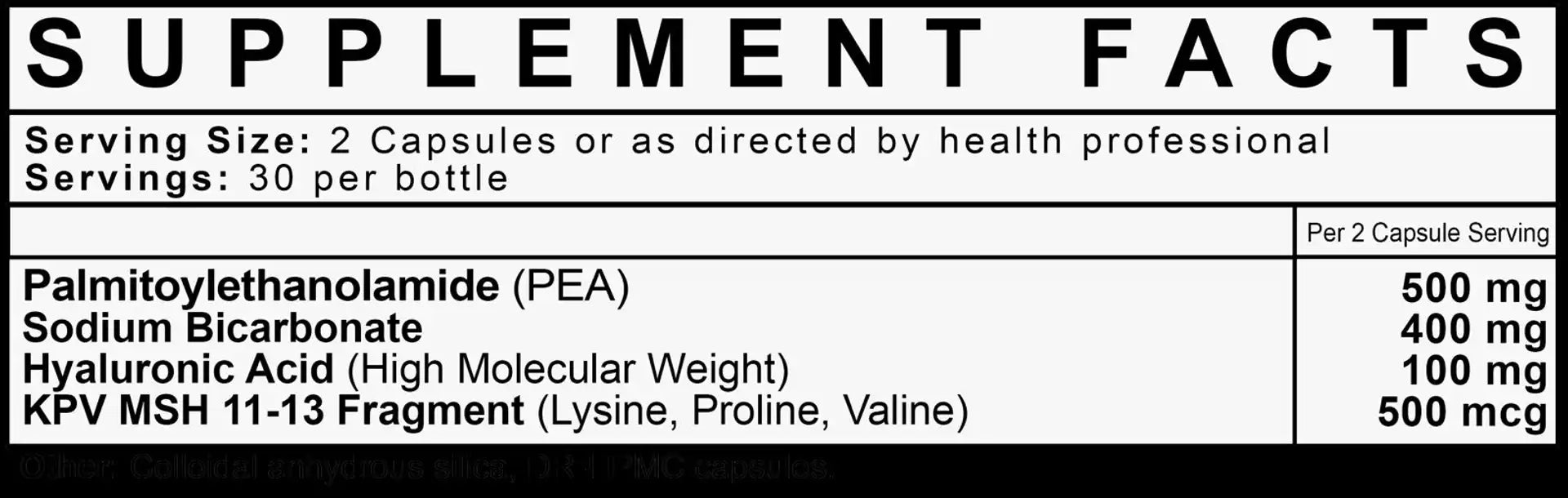 Sodium Bicarbonate acts as a stomach acid buffer, facilitating better peptide absorption, thereby enhancing the efficacy of KPV and its supportive components.