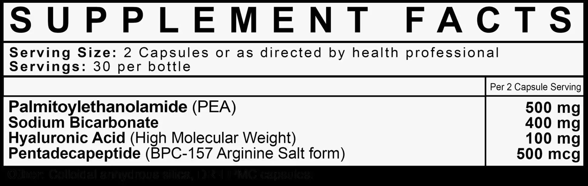 Sodium Bicarbonate further optimizes the excellent bioavailability of BPC-157 for maximum absorption in capsule form.